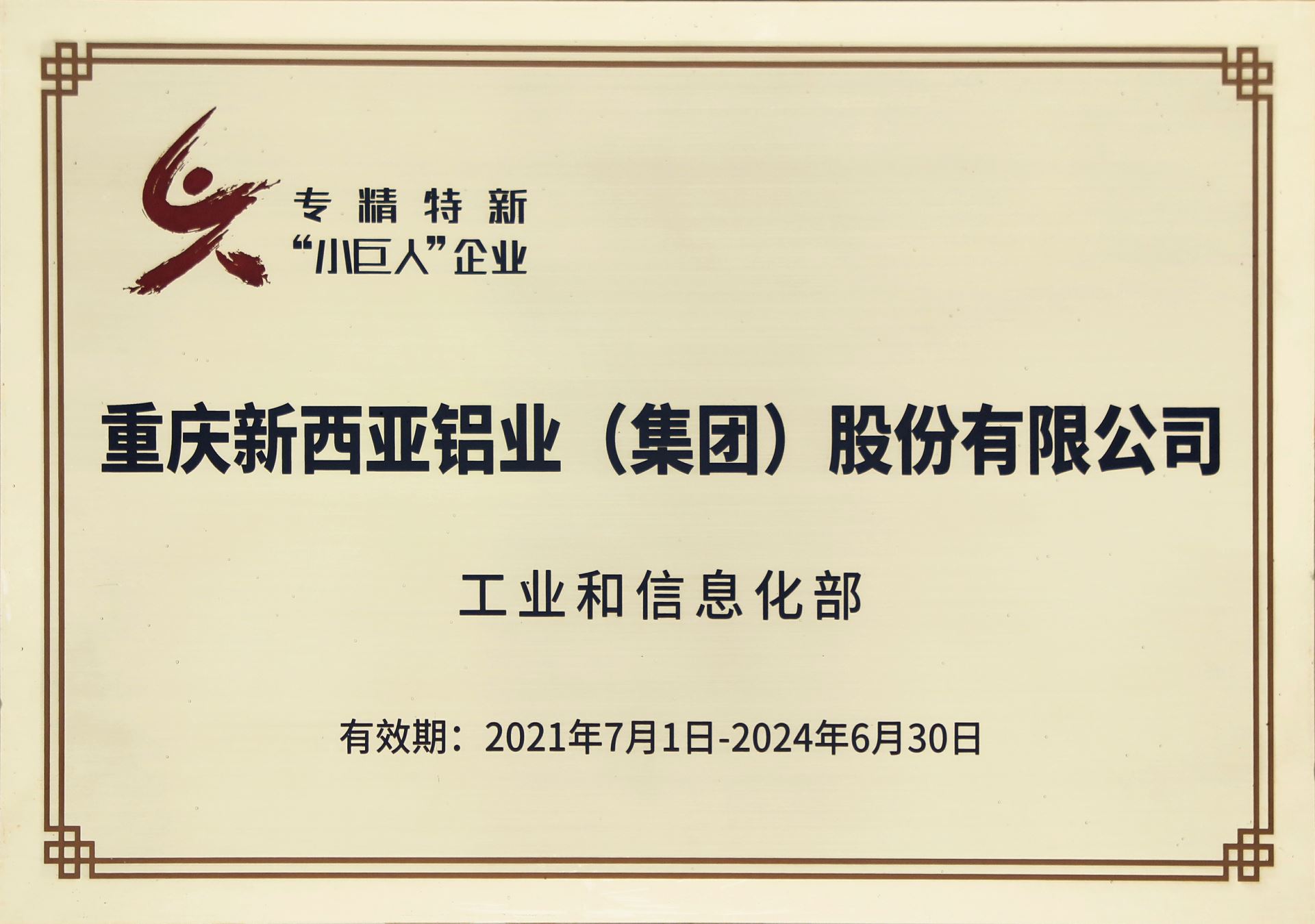 【新西亞鋁業(yè)集團(tuán)】喜訊:新西亞鋁業(yè)榮膺國(guó)家工信部“專精特新”小巨人授牌