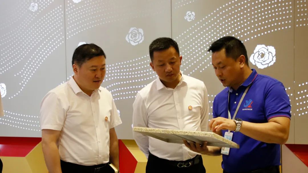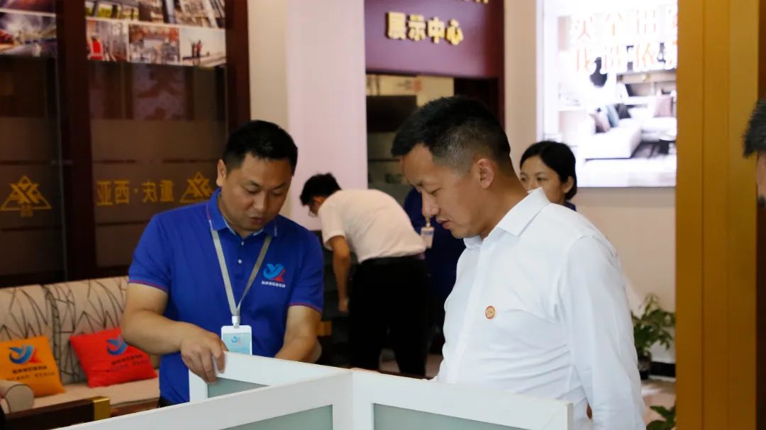 在集團公司黨支部書記、董事長、總經(jīng)理劉斌的陪同下,沈總一行先后參觀了集團公司鋁裝飾展廳、鋁家居展廳、黨群活動室、文化長廊等區(qū)域。