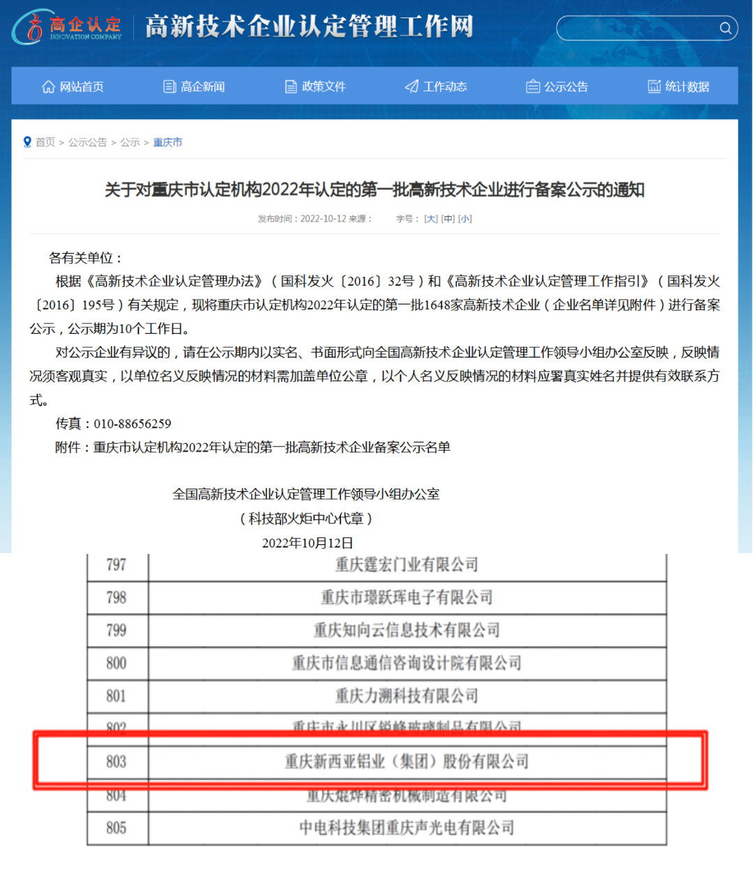 2022年10月12日,根據(jù)《高新技術(shù)企業(yè)認(rèn)定管理辦法》(國科發(fā)火〔2016〕32號(hào))和《高新技術(shù)企業(yè)認(rèn)定管理工作指引》(國科發(fā)火〔2016〕195號(hào))有關(guān)規(guī)定,高新技術(shù)企業(yè)認(rèn)定管理工作網(wǎng)對2022年度重慶市第一批擬認(rèn)定高新技術(shù)企業(yè)名單進(jìn)行了公示,我司喜在榜中。這是新西亞鋁業(yè)獲得由國家科技部審核復(fù)審認(rèn)定的“高新技術(shù)企業(yè)”稱號(hào)。