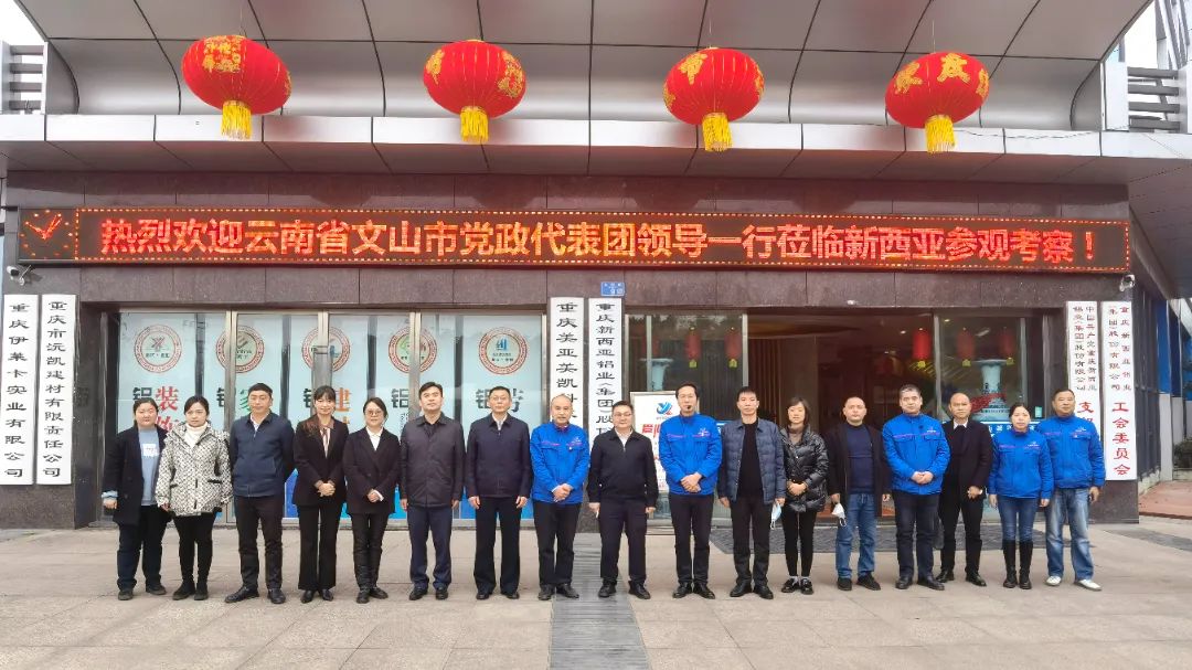 1月13日上午,云南省文山市黨政代表團(tuán)蒞臨新西亞鋁業(yè)考察交流、招商座談。文山州委常委、市委書記蔣俊率領(lǐng)云南省文山市黨政代表團(tuán)赴新西亞鋁業(yè)集團(tuán)招商考察,集團(tuán)公司總經(jīng)理劉斌和經(jīng)營班子成員全程陪同參觀了鋁裝飾展廳、依萊卡全鋁家居體驗(yàn)館以及公司文化長廊。