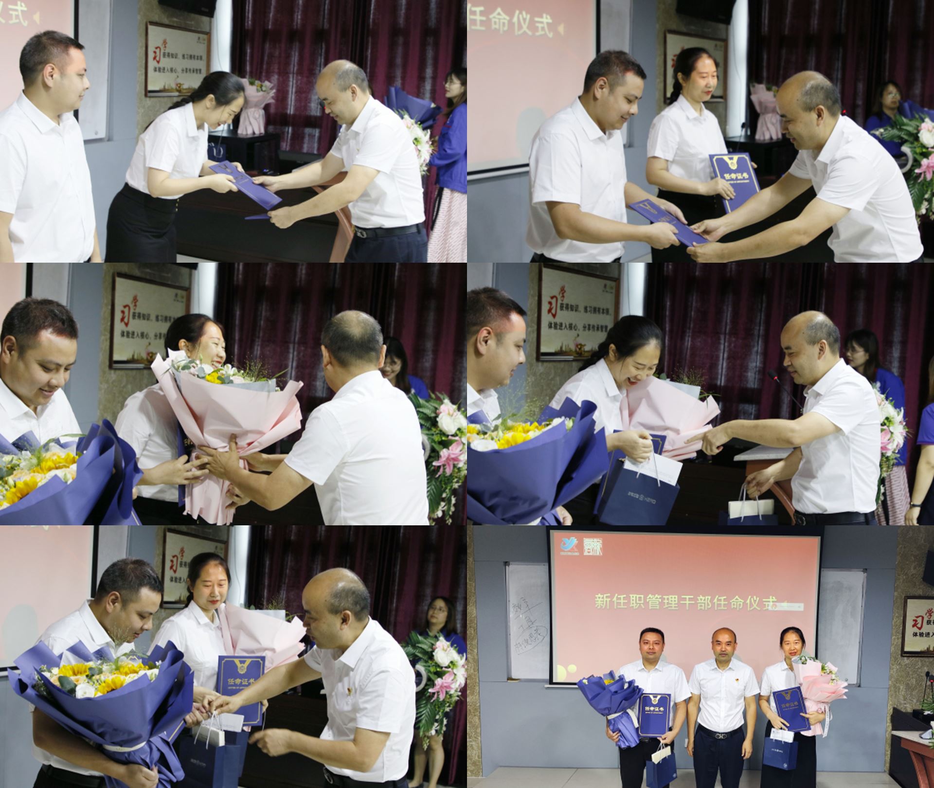 集團公司董事長兼總經(jīng)理劉斌分別與新任職干部簽訂了《任期履職承諾書》、頒發(fā)了任命書,并為他們送上了精心準(zhǔn)備的禮物和鮮花。