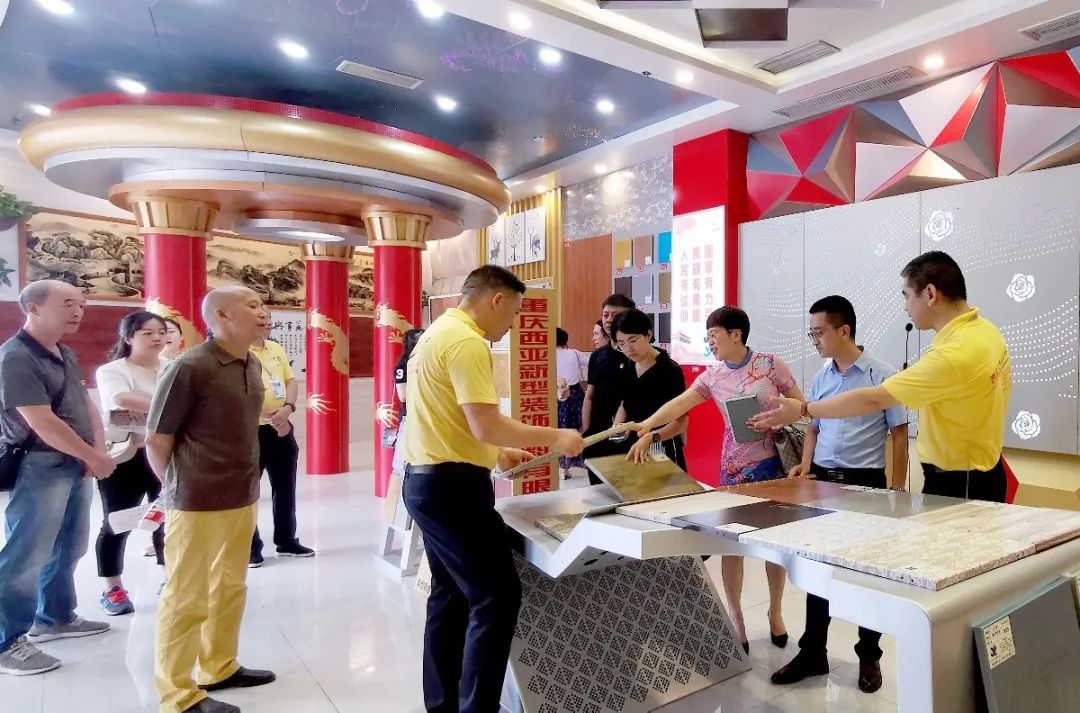 在參觀產(chǎn)品展廳時,鐘書記一行對西亞牌鋁單板在內(nèi)裝、外裝方面的應(yīng)用表現(xiàn)出濃厚的興趣,對西亞牌鋁單板表面處理工藝的豐富性,造型的獨(dú)特性大加贊賞;對依萊卡全鋁家居在環(huán)保健康、防水防潮、高保值可回收等方面的特性表示認(rèn)可。