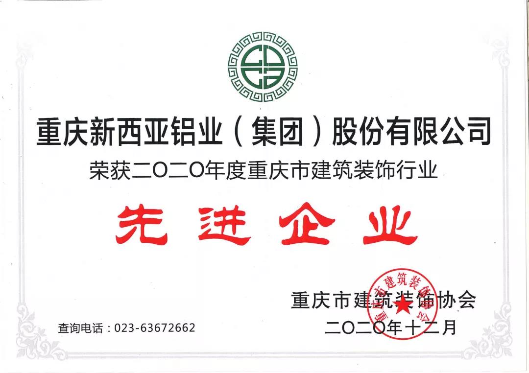 會(huì)上,對(duì)2020年度重慶市建筑裝飾工程優(yōu)質(zhì)獲獎(jiǎng)企業(yè)、先進(jìn)企業(yè)、優(yōu)秀個(gè)人進(jìn)行表彰。重慶新西亞鋁業(yè)(集團(tuán))股份有限公司榮獲2020年度重慶市建筑裝飾行業(yè)“先進(jìn)企業(yè)”、總經(jīng)理劉斌榮獲2020年度重慶市建筑裝飾企業(yè)“優(yōu)秀經(jīng)理”。
