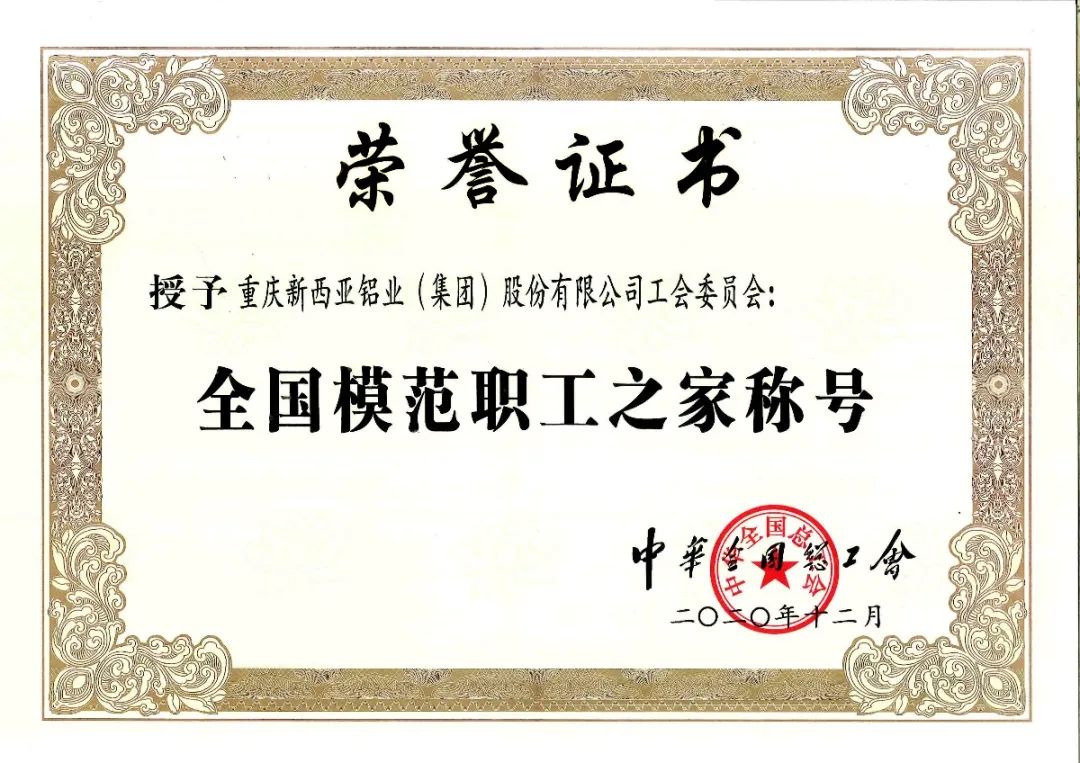 據(jù)悉,“全國模范職工之家”榮譽稱號,由中華全國總工會設立,每五年評選一次,是全國工會系統(tǒng)表彰先進集體的最高榮譽,也是國家對基層工會工作的最高褒獎。新西亞鋁業(yè)集團工會是2021年江津區(qū)唯一獲得該項榮譽的單位。新西亞鋁業(yè)集團工會將以此為新起點,再接再厲,以飽滿的工作熱情、昂揚的精神狀態(tài),切實做好員工服務工作,積極發(fā)揮好公司與員工的橋梁和紐帶作用,在不斷增強員工獲得感、認同感、幸福感的同時,為創(chuàng)行業(yè)標桿、鑄民族品牌的新西亞鋁業(yè)集團作出新的更大貢獻。