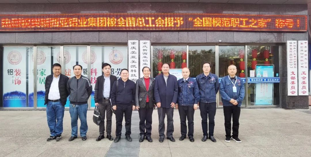 重慶市總工會一行先后參觀了公司鋁裝飾展廳、鋁家居展廳、生產車間、公司食堂,聽取了公司的生產經營和工會建設情況匯報。