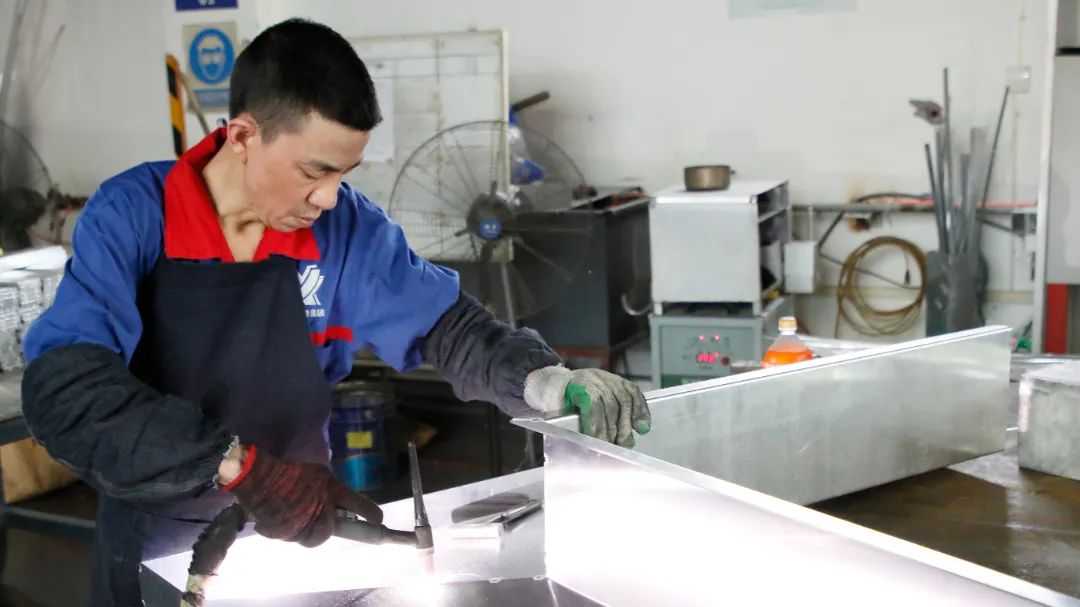 走進(jìn)生產(chǎn)車間,一股熱浪迎面撲來,奮戰(zhàn)在生產(chǎn)一線家人們有條不紊地干著手中的事情,開劃、折彎、焊接、組裝、打磨、前處理、噴漆、掛件、包裝……忙得不亦樂乎。車間高溫悶熱對他們是極大的考驗(yàn),但他們沒有絲毫退縮,依然默默堅(jiān)守在自己的崗位上,保質(zhì)保量奮斗著每日的生產(chǎn)任務(wù)。“在公司這個(gè)崗位工作10年了,我覺得干一行就要愛一行,只要市場需要,就會一直堅(jiān)守下去。”這是一位老員工字里行間透露出的心里話。
