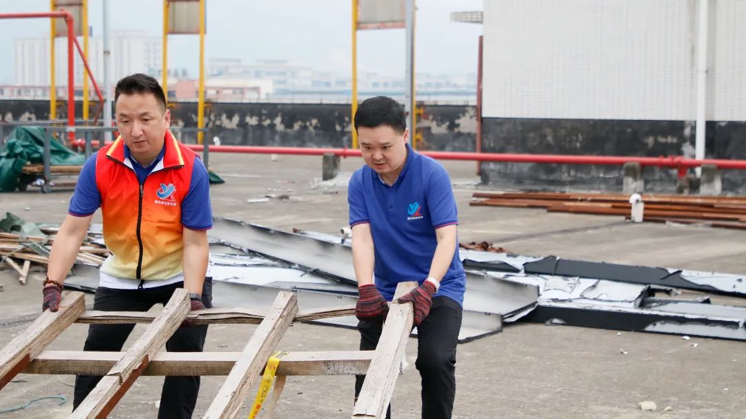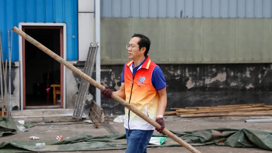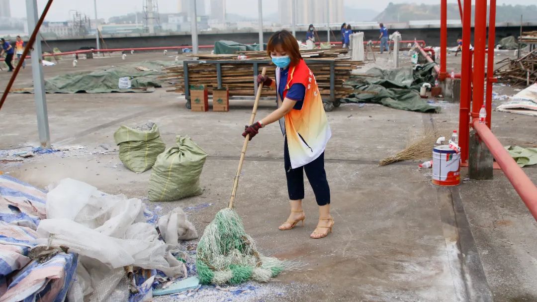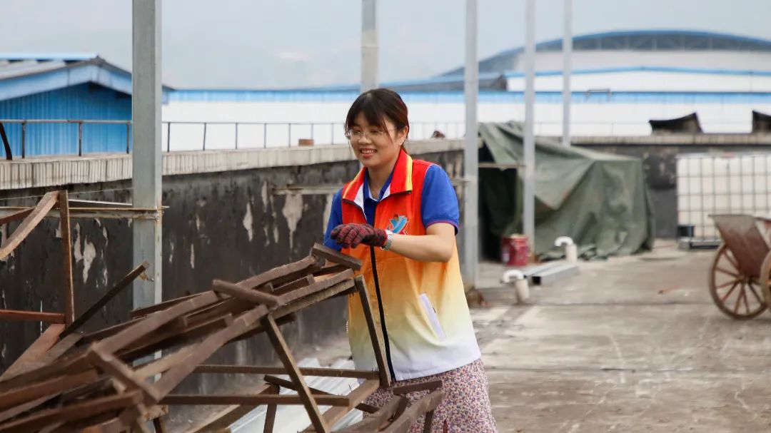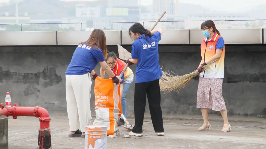 勞動中,大家忘記了自己的年齡、性別,個個不甘落后,搶著去干重活、臟活、累活……勞動的汗水浸濕了大家身上的衣裳,同時也換來了“收獲的喜悅”。經(jīng)過近兩個半小時的辛勤勞動,讓原來雜亂的廠房頂樓煥然一新。