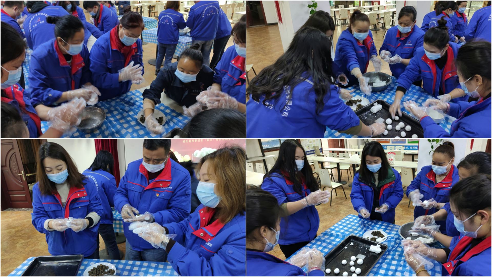 活動(dòng)在公司食堂熱鬧開(kāi)展,大家紛紛擼起袖子,迫不及待地上手參與,將提前準(zhǔn)備好的糯米粉加水揉捏成團(tuán)再分切成一個(gè)個(gè)小劑子,再將劑子壓扁,把備好的餡料放到圓形的面皮上,一收一搓,忙得不亦樂(lè)乎。