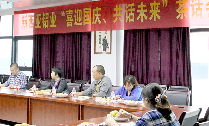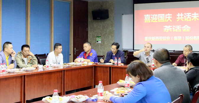 9月30日,重慶西亞鋁業(yè)集團公司在三樓會議室舉行了“喜迎國慶,共話未來”茶話會。公司董事長兼總經(jīng)理劉斌,副總經(jīng)理傅明華、周雄及各部門負責人、部分主管28人,齊聚一堂,共話新西亞美好未來。