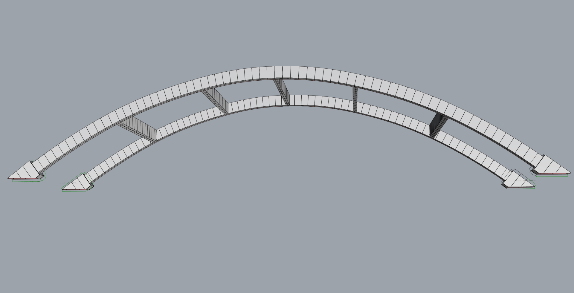 本項目為某市城區(qū)重建跨河大橋,橋上部主體鋼結(jié)構(gòu)需全部使用鋁單板包裹裝飾,同時建設(shè)單位要求務(wù)必在春節(jié)前完成全部裝飾安裝工作,迎接返鄉(xiāng)高峰期人員的到來。我司在承接這一任務(wù)時橋梁鋼結(jié)構(gòu)主體還未施工完成,需要在測量深化階段同步龍骨施工與材料制作。