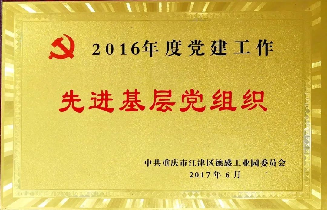 2019年6月,被中共重慶市江津區(qū)德感工業(yè)園委員會評為“先進基層黨組織”;