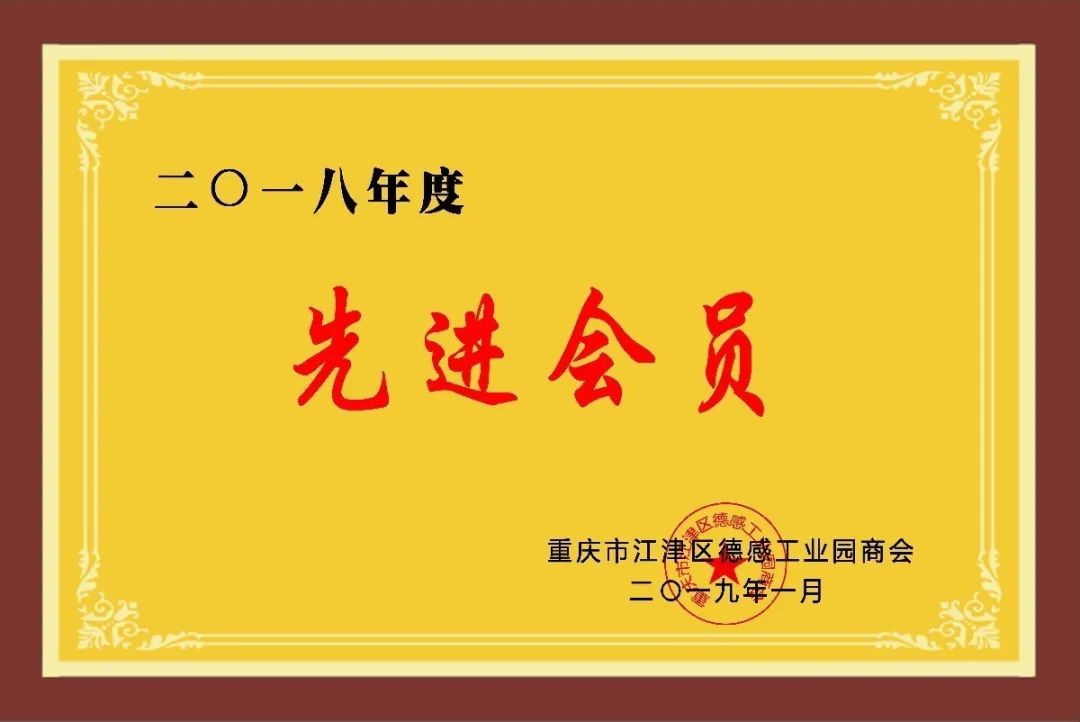 榮獲2018、2019年度江津區(qū)德感工業(yè)園商會“先進會員單位”