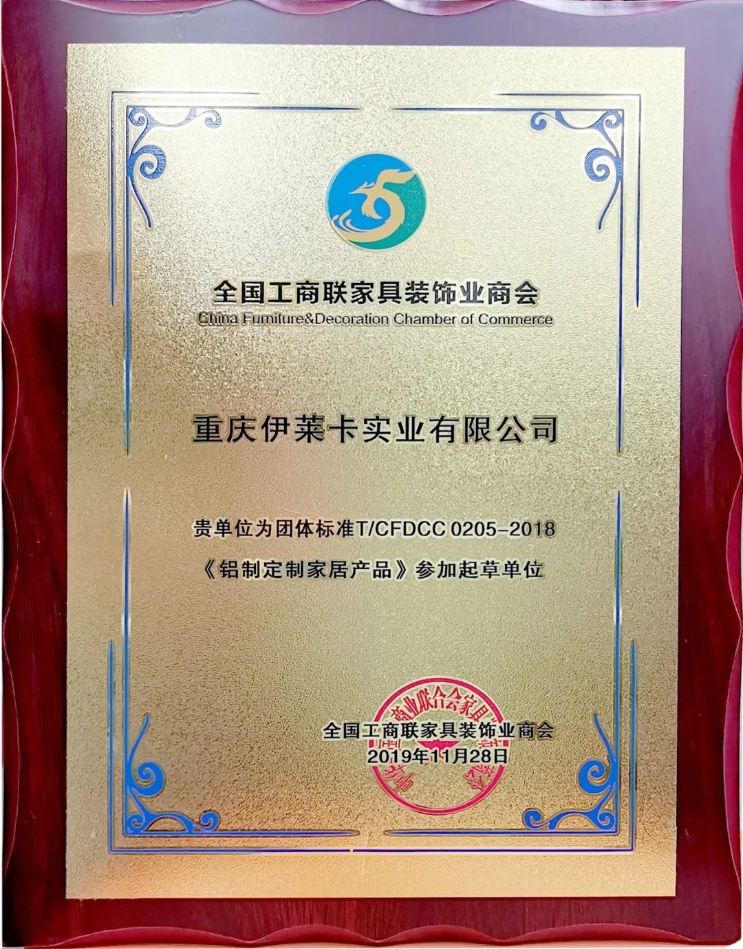 2019年重慶伊萊卡實業(yè)有限公司被重慶家具行業(yè)協會評為“優(yōu)秀企業(yè)”;