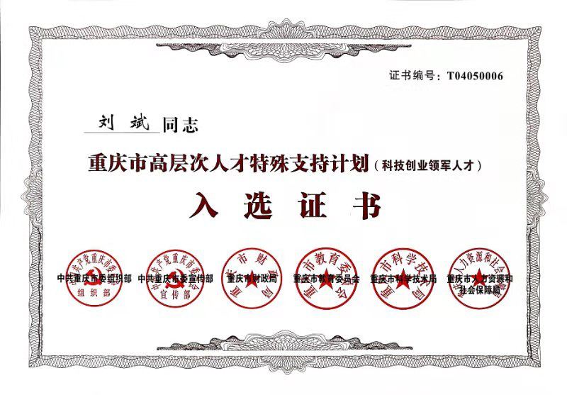 總經理劉斌入選重慶市高層次人才