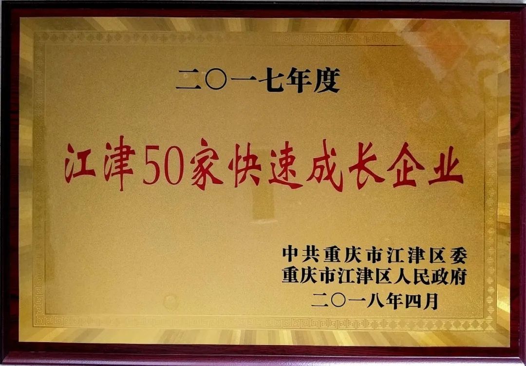 2018年4月被江津區(qū)委、區(qū)府評為“2017年度江津50家快速成長企業(yè)”;