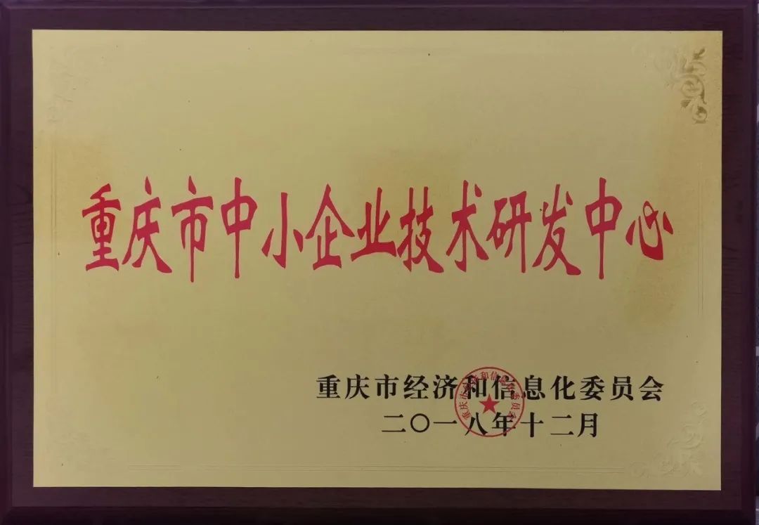 2018年12月,公司被重慶市經濟和信息化委員會認定為“重慶市中小企業(yè)技術研發(fā)中心”;