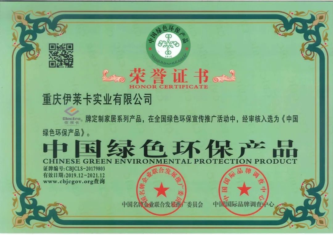 依萊卡全鋁家居牌定制家居系列產品,入選為《中國綠色環(huán)保產品》
