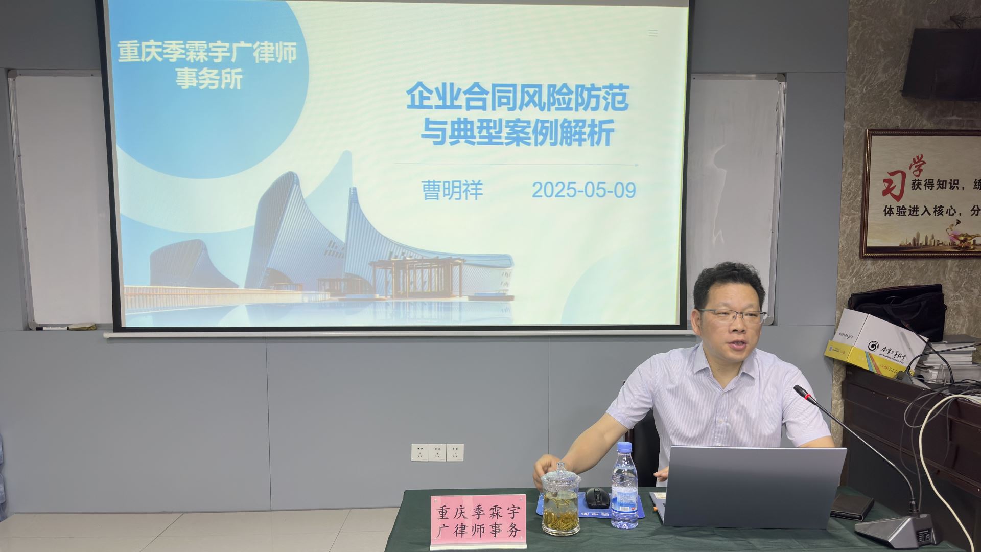 活動當(dāng)日,重慶季霖宇廣律師事務(wù)所主任曹明祥以 “以法助企?護航發(fā)展”為主題,結(jié)合新西亞鋁業(yè)實際情況,開展了《企業(yè)合同風(fēng)險防范與典型案例解析》專題法治宣講。宣講活動由公司總經(jīng)理助理周雄主持,公司經(jīng)營負(fù)責(zé)(管理)負(fù)責(zé)人以及員工代表共計 40 余人參加,涵蓋生產(chǎn)、銷售、人力等關(guān)鍵部門負(fù)責(zé)人及一線員工代表。曹主任聚焦制造業(yè)特點,剖析典型合同糾紛及勞動用工案例,著重講解風(fēng)險識別、防范策略及民法典關(guān)鍵條款,助力企業(yè)提升依法維權(quán)與風(fēng)險防控能力。