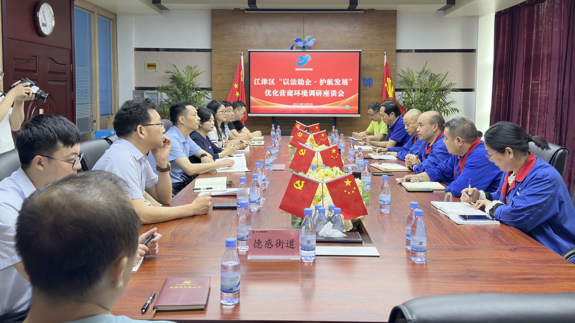 隨后,雙方在一樓多功能廳進行了深入的座談交流。董事長兼總經(jīng)理劉斌首先對江津區(qū)委政法委委員、區(qū)法學(xué)會常務(wù)副會長陳祖平一行表示熱烈歡迎和誠摯感謝,他表示調(diào)研團隊的到來體現(xiàn)了各級黨委、政府對優(yōu)化營商環(huán)境的重視以及對民營企業(yè)健康發(fā)展的關(guān)心。各事業(yè)部負(fù)責(zé)人提出了公司在依法經(jīng)營、知識產(chǎn)權(quán)保護、財務(wù)稅務(wù)、勞動用工、合同管理等方面存在的問題和困難,企業(yè)方面共提出涵蓋知識產(chǎn)權(quán)保護、稅務(wù)籌劃等 15 類問題,涉及合同管理、勞動用工等多領(lǐng)域。