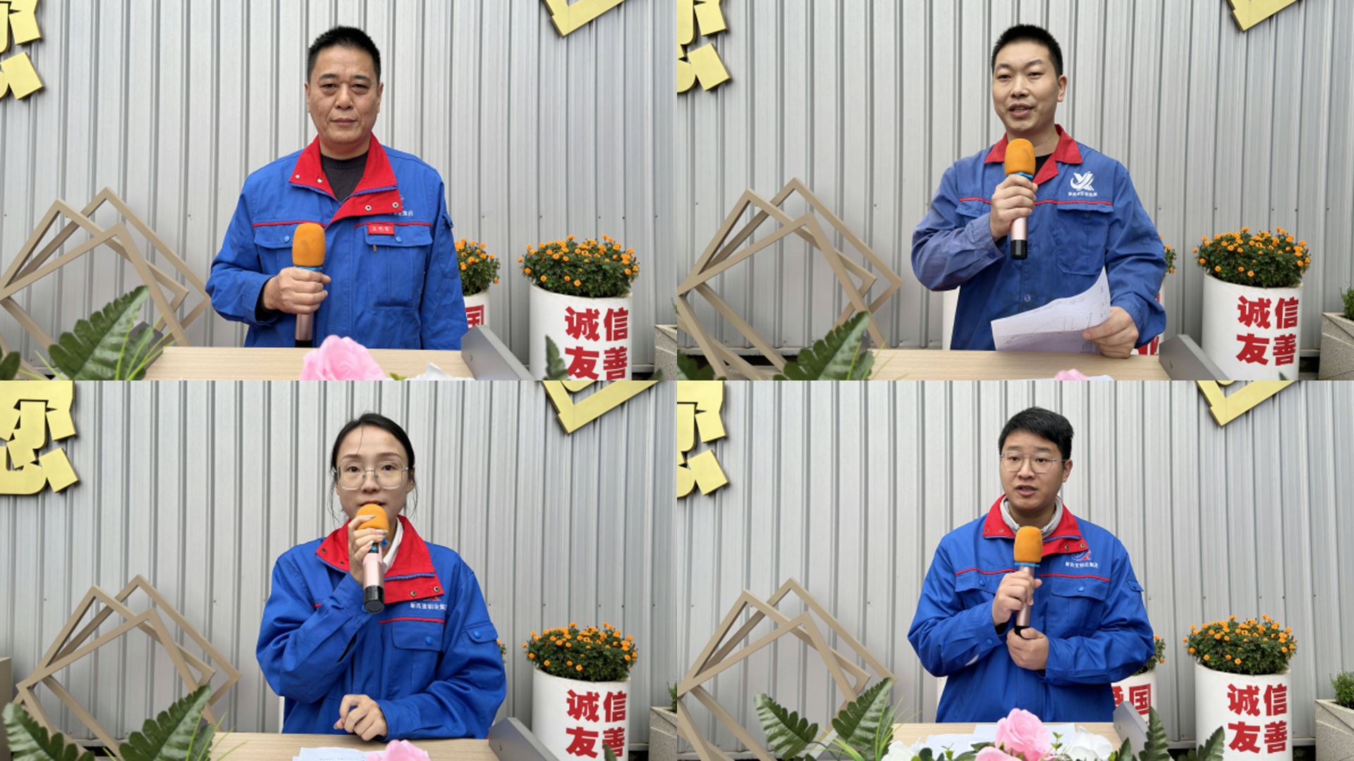優(yōu)秀員工代表王明軍、張紅與新入職員工代表李婉瑩、張毅先后發(fā)言,分享成長感悟與奮斗決心。