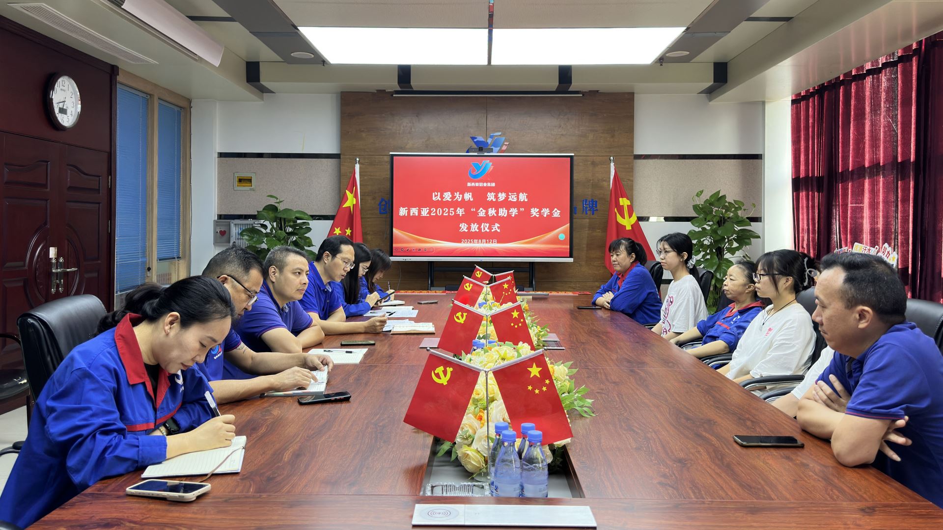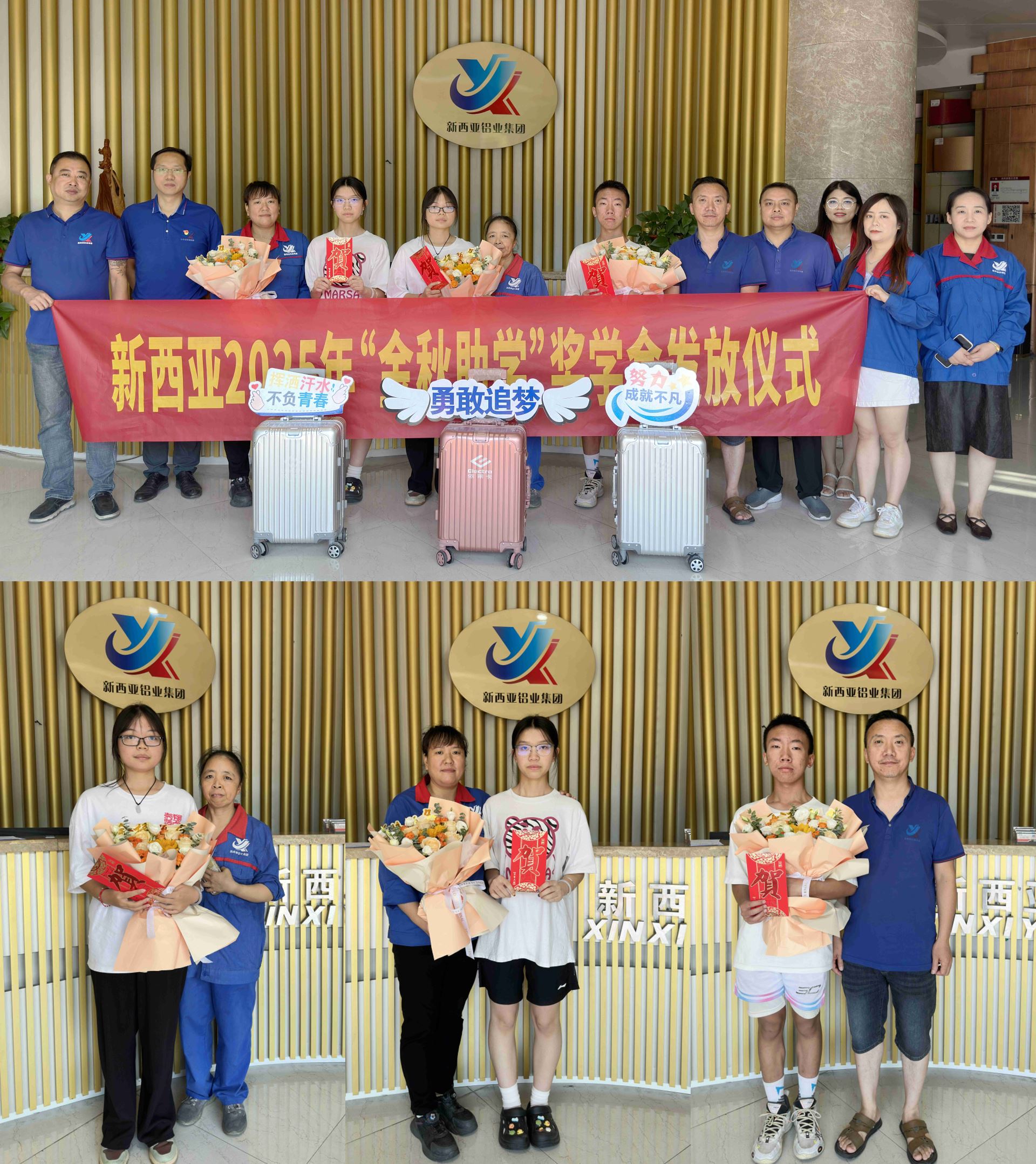 金風(fēng)送爽,碩果盈枝。8月12日,新西亞鋁業(yè)集團(tuán)一樓多功能廳內(nèi)暖意融融,氣氛熱烈。公司一年一度的“金秋助學(xué)”活動在此隆重舉行,為這個收獲的季節(jié)增添了別樣的溫情與感動。集團(tuán)公司經(jīng)營、群團(tuán)工作負(fù)責(zé)人與3名即將步入大學(xué)校園的員工及其子女歡聚一堂,共同見證這一充滿愛與希望的暖心時刻。儀式由工會主席傅明華主持。