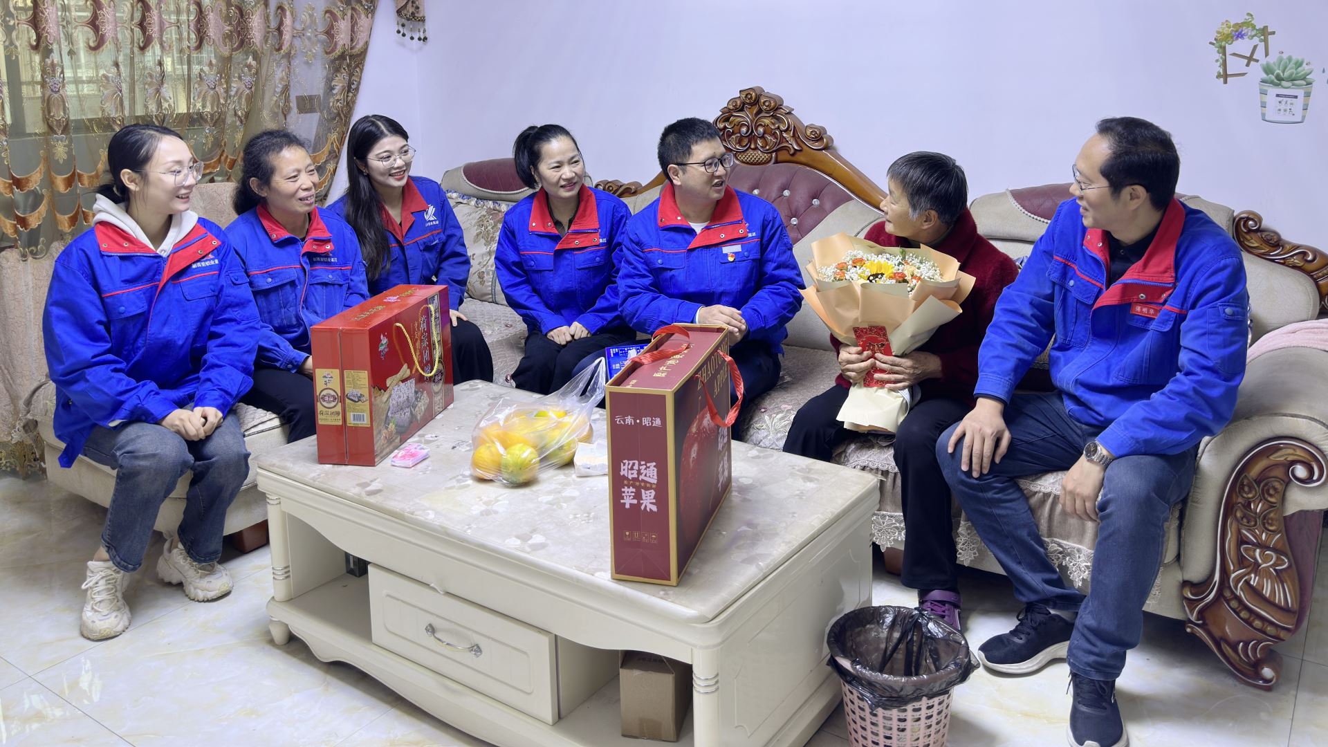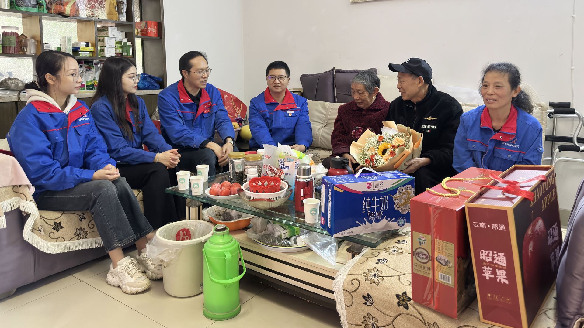 黨支部書記曹健、工會主席傅明華、團支部書記張麗芳及公司員工代表組成慰問組,開展座談并登門走訪,將滿載敬意的慰問品與真摯關(guān)懷送到員工父母手中。此次“組團送溫暖”,既是對“尊賢頌德、感恩奉獻(xiàn)”企業(yè)文化的生動踐行,也是對集團發(fā)展歷程中孝道與感恩精神的溫情回溯。