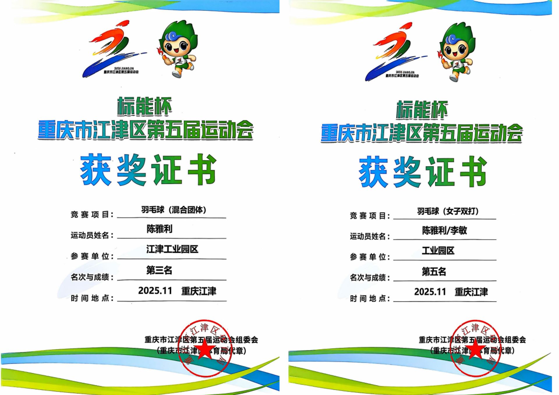 這份榮譽(yù)的背后,是歷時(shí)兩個(gè)月的激烈角逐。在9月至11月舉行的江津區(qū)第五屆“標(biāo)能杯”運(yùn)動(dòng)會(huì)中,陳雅利同志作為工業(yè)園區(qū)代表團(tuán)的一員,與隊(duì)友并肩作戰(zhàn)。她秉持著“特別能吃苦、特別能挑戰(zhàn)、特別能爭(zhēng)先”的拼搏精神,一路過(guò)關(guān)斬將,最終獲得羽毛球混合團(tuán)體第三名、女子雙打第五名的成績(jī),為工業(yè)園區(qū)代表團(tuán)贏(yíng)得全區(qū)團(tuán)體總分第三名的優(yōu)異成績(jī)貢獻(xiàn)了自己的一份力量。